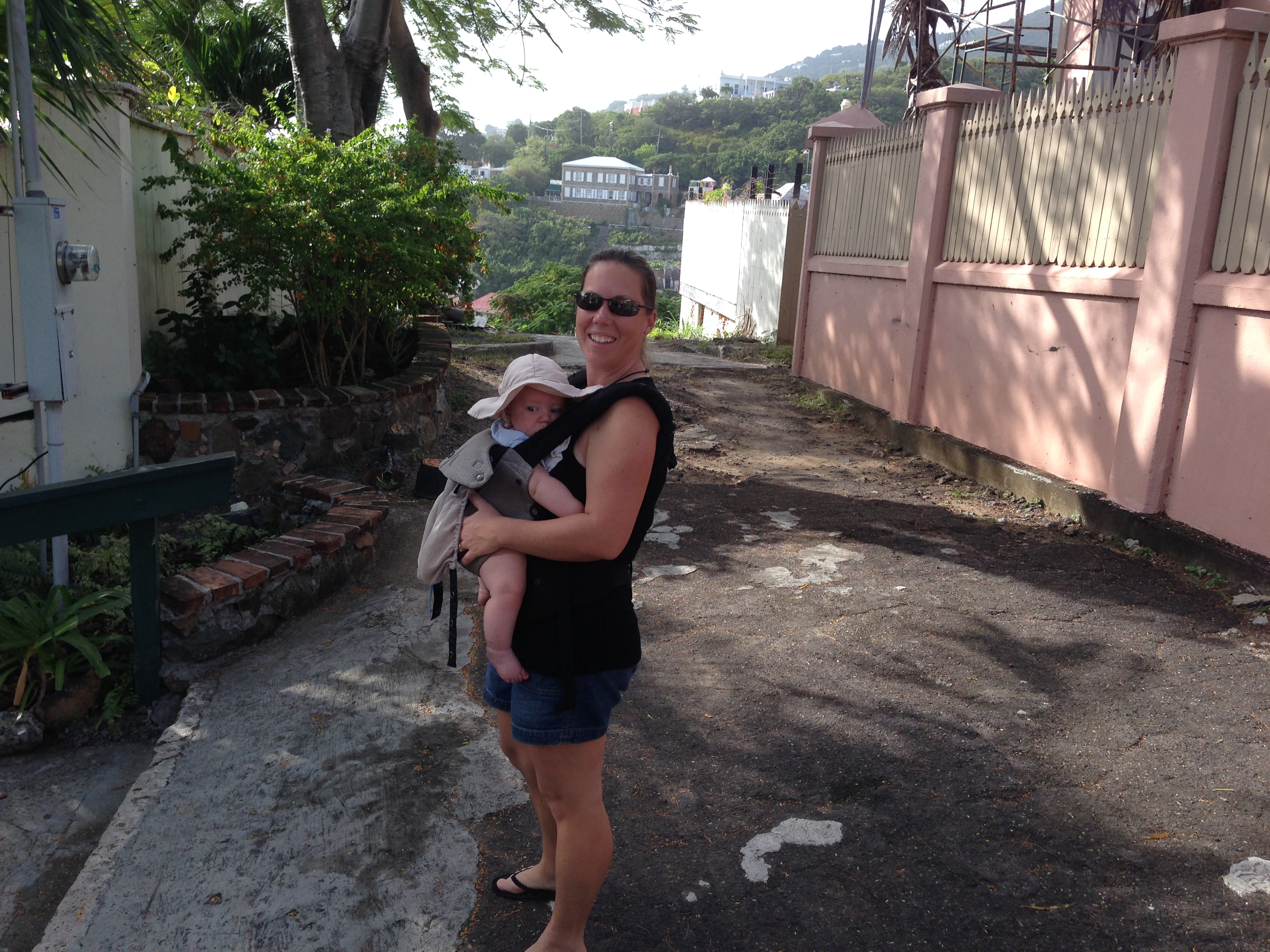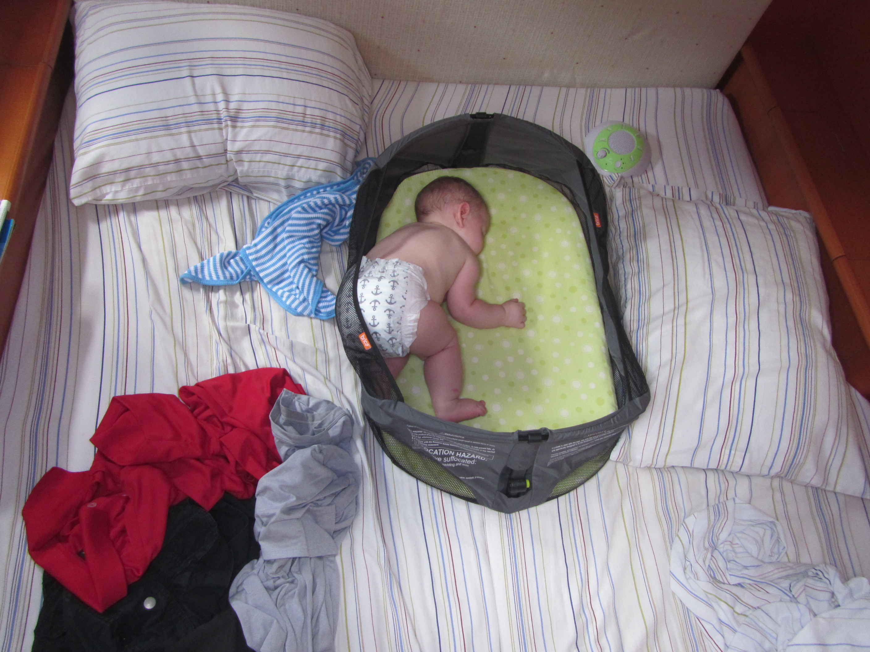 Baby gear: due to the space limitations of the boat, bringing baby gear was extremely limited. A high chair was out, as was a stroller, a pack n’ play, baby gates, or any type of swing or bouncer. He sat on the ground, bench, table or counter to be fed. We brought a blanket as a play mat and some toys. For sleeping we brought a very compact travel bassinet (Brica was the brand), which doubled as a playpen at the airport. He was either carried or in the lillebaby carrier (a soft pack style carrier) when we went anywhere (when we did the trip 2 years prior- we used a metal framed hiking backpack for our 2 year old). We brought a tub of formula he was used to (just in case my supply was compromised), my breast pump, bottles, a manual food masher, and an assortment of food pouches (what I thought would be sufficient for all meals out plus all travel days), disposable bibs, and cheap baby spoons.