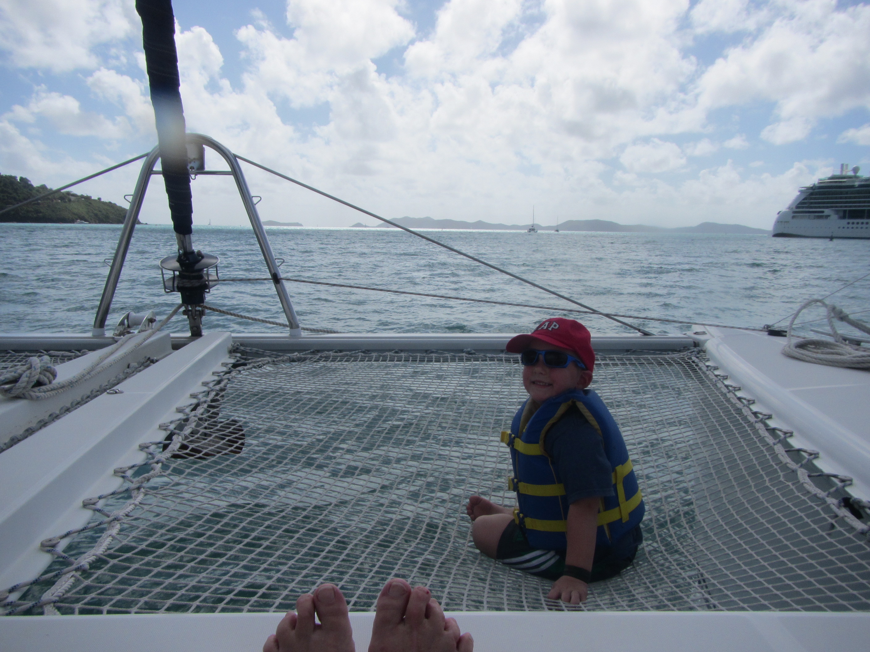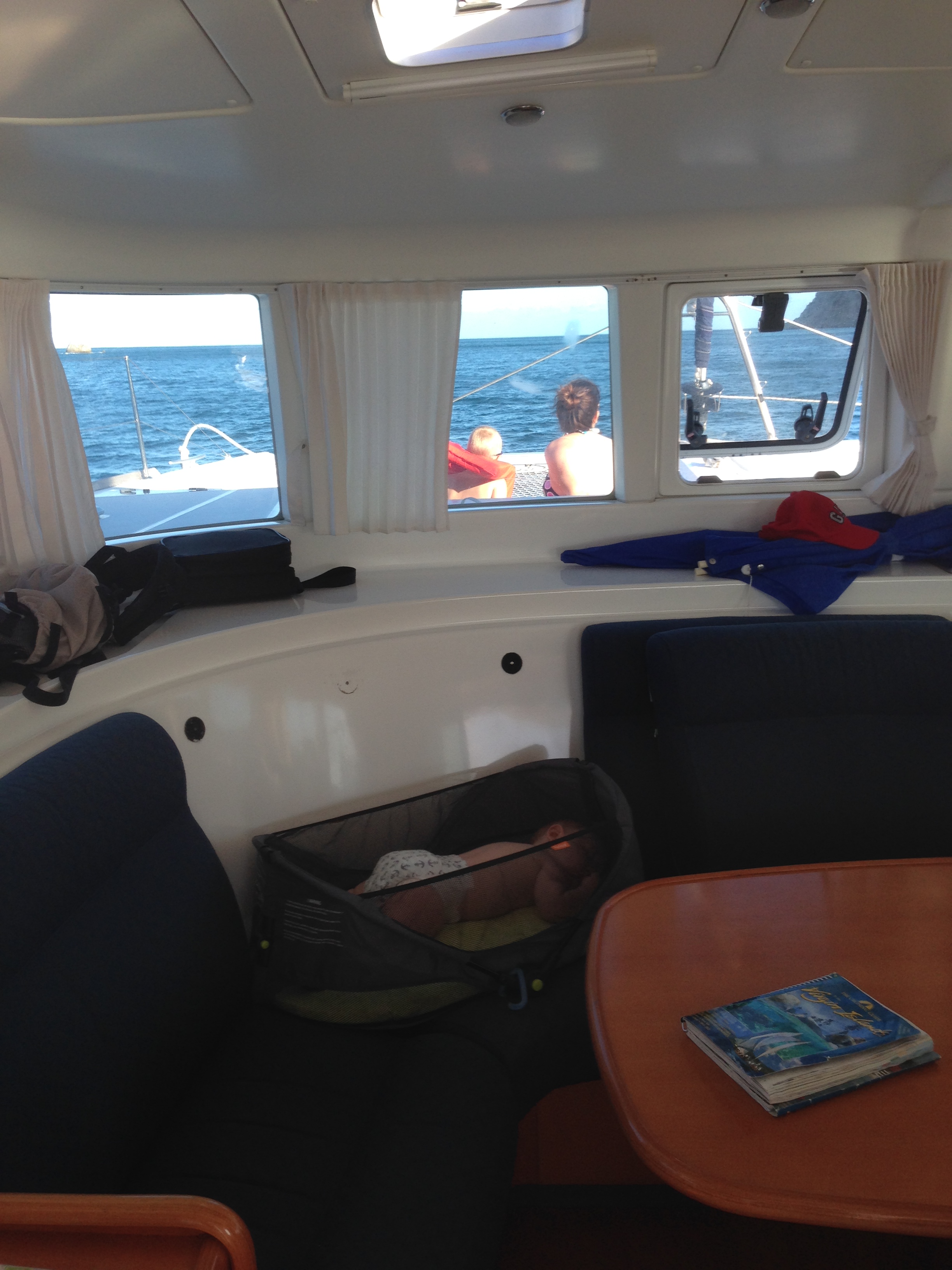 Boat: I touched on this a little above, but the first decision was the boat itself. A catamaran allows for cabins in each hull – ours had 4 cabins and 4 heads (bathrooms). Most important to us was that there was exterior forward seating – without this one the first trip it had contributed to nearly everyone being sea sick. There isn’t a whole lot you can do for a 4 year old that was sea sick so an improved boat layout was paramount. We also got him sea bands and some homeopathic oil for behind his ear. With the boat selected we then had to decide the best way to get to it.